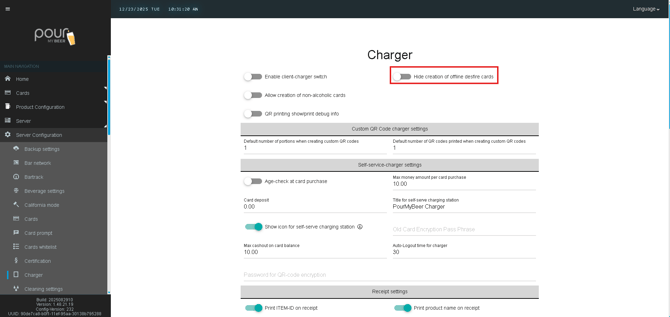 When enabled, this prevents staff from creating offline DESFire cards at the charger.