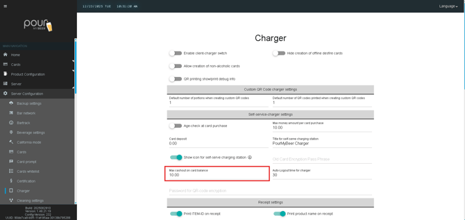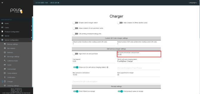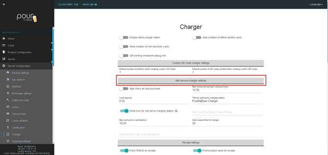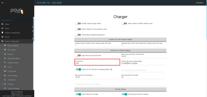 The Self-Service Charger Settings allow you to control how customers purchase, reload, and manage RFID cards at a self-service charging station. These settings help enforce age verification, spending limits, deposits, and user experience behavior.