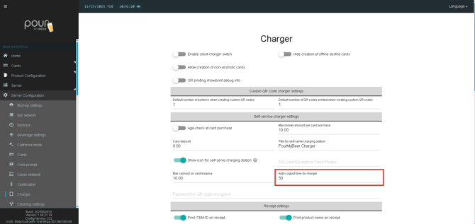 Auto-Logout Time for Charger