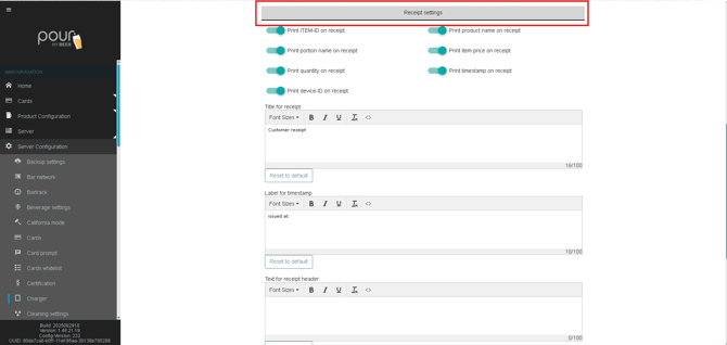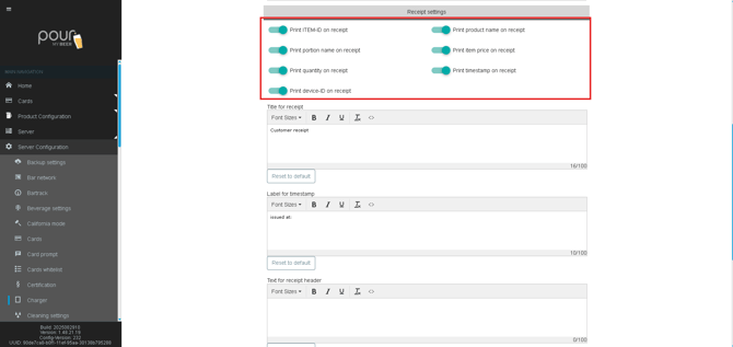 Use the toggles to enable or disable specific information on printed receipts.