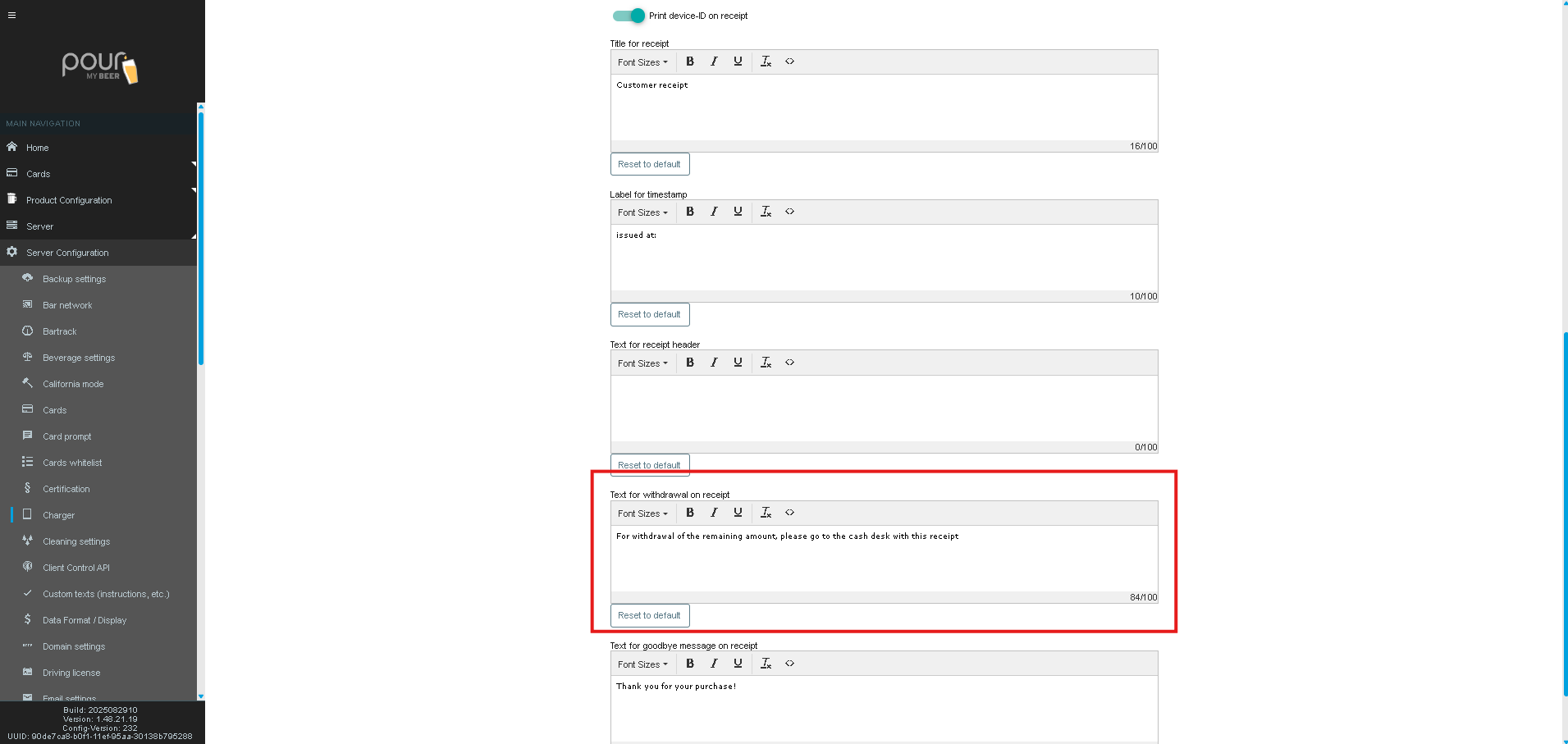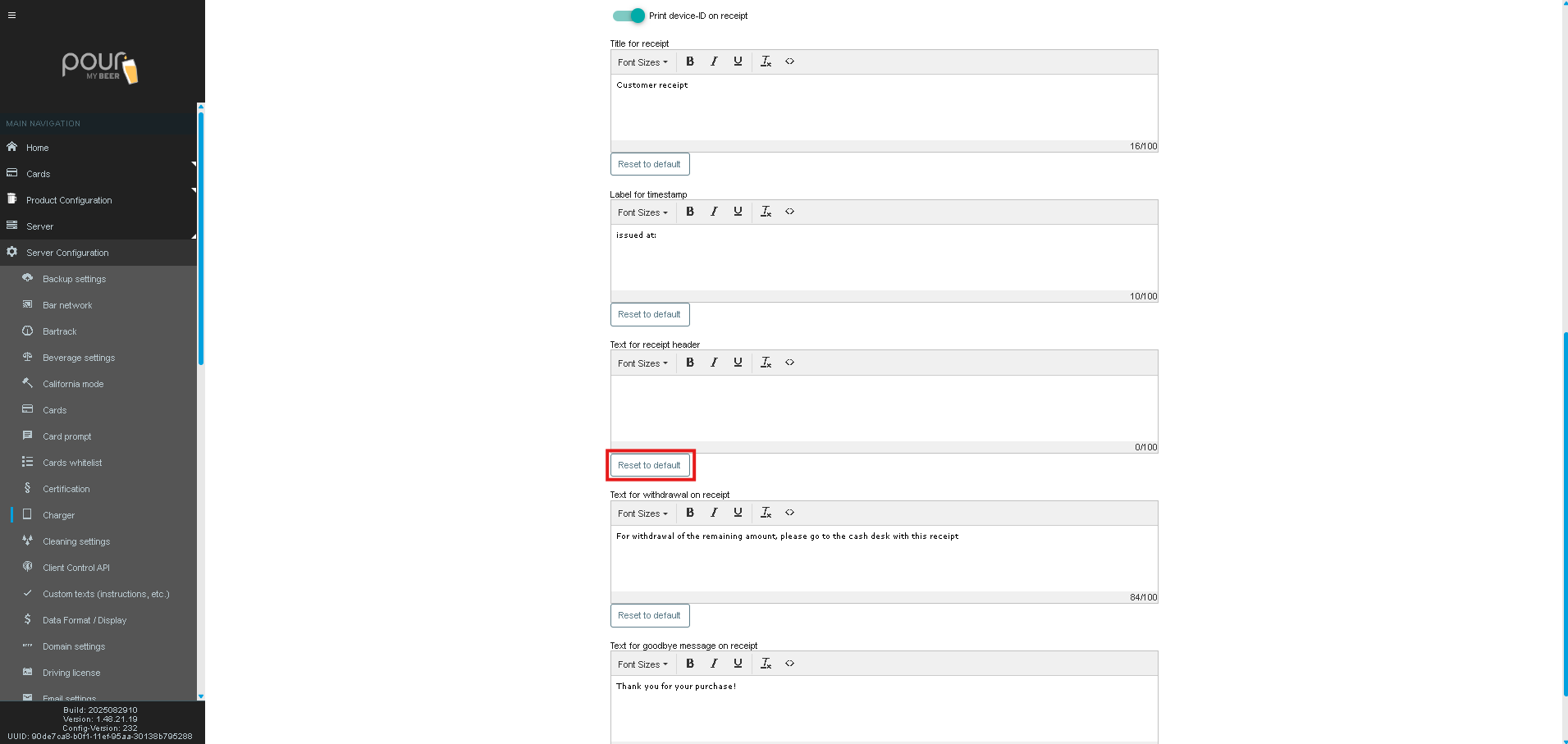 Print device-ID on receipt