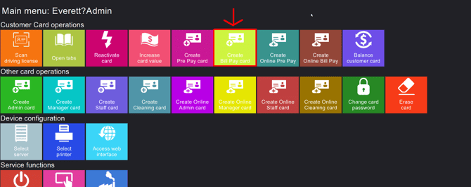 - Under the “Customer Card operations” section, tap the "Create Bill Pay Card" or "Create Online Bill Pay Card" button.