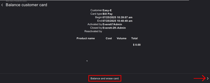 - This screen will show you a detailed and itemized view of the card’s usage. What pours were made, the volume, and cost. Take this information and bill your patron accordingly in your choice of POS.