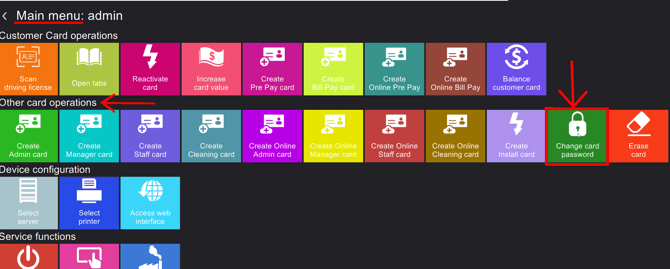 Select the green Change card password tile (icon: padlock).