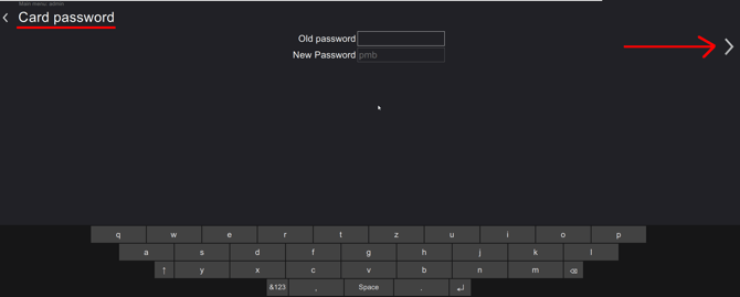 On the Change card password screen, place one card at a time on the RFID reader.