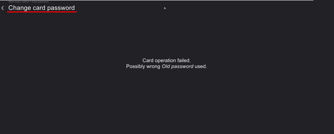 - Card operation failed. Possibly wrong Old password used. → This happens when a card is already activated with a password that is not the same as the New password field. In this case, you would need to remember what the Old password that was assigned to this card, go back to start this process over, and type that password into the Old password field. You should be able to change/re-assign the password to that card and continue on with your card creation journey.
