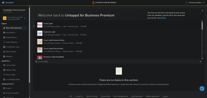 Once connected, your Untappd menu syncs directly to your PourMyBeer database-saving time and keeping your wall displays up to date.