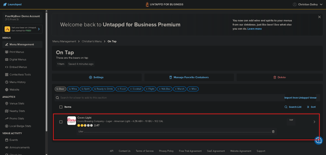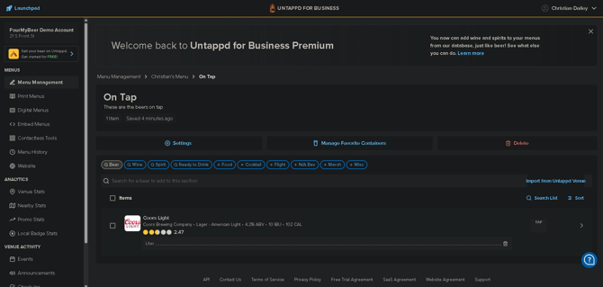The Untappd for Business integration allows you to automatically import beers and manage your tap list inside the Table Tap Go (TTG) system.