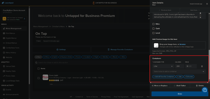 Continue updating the container and price for all the items you want to sync to PourMyBeer.