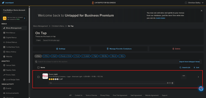 Once your Untappd menu is built with all the beers and other drinks added, you’ll need to configure pricing for each beer.
