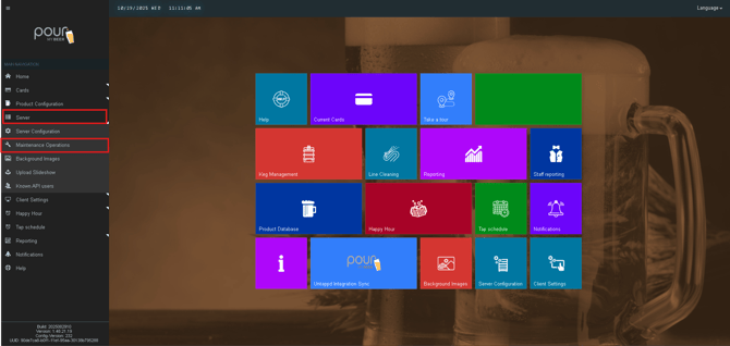 Log into the Table Tap Go Server Management Page and go to Server on the Left hand side then select Maintenance