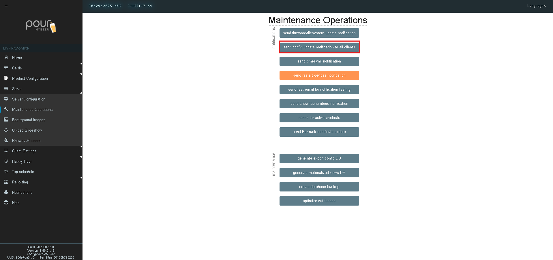 Select Send Config Update notification to all clients-This will send all the new added beers to the screens to be assigned.