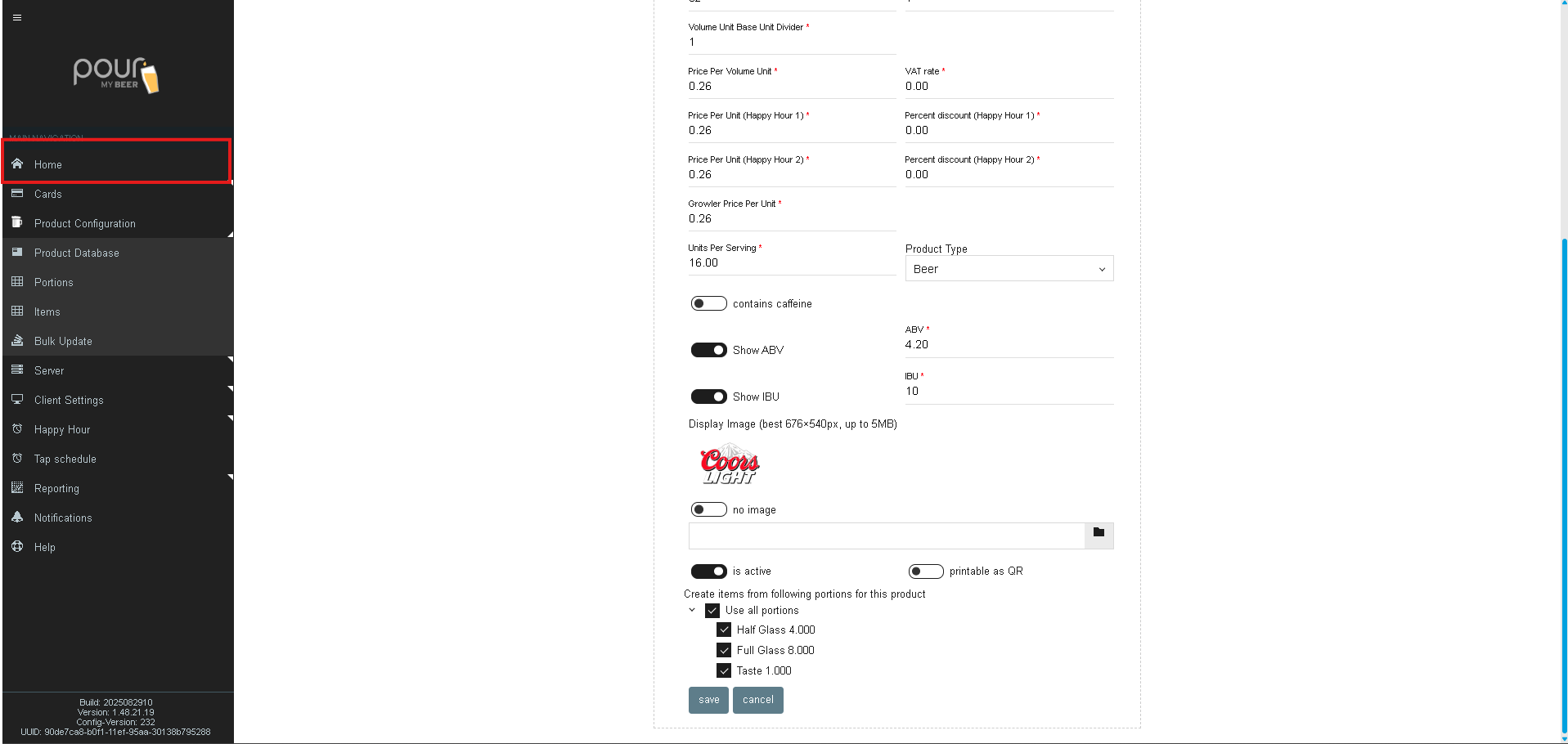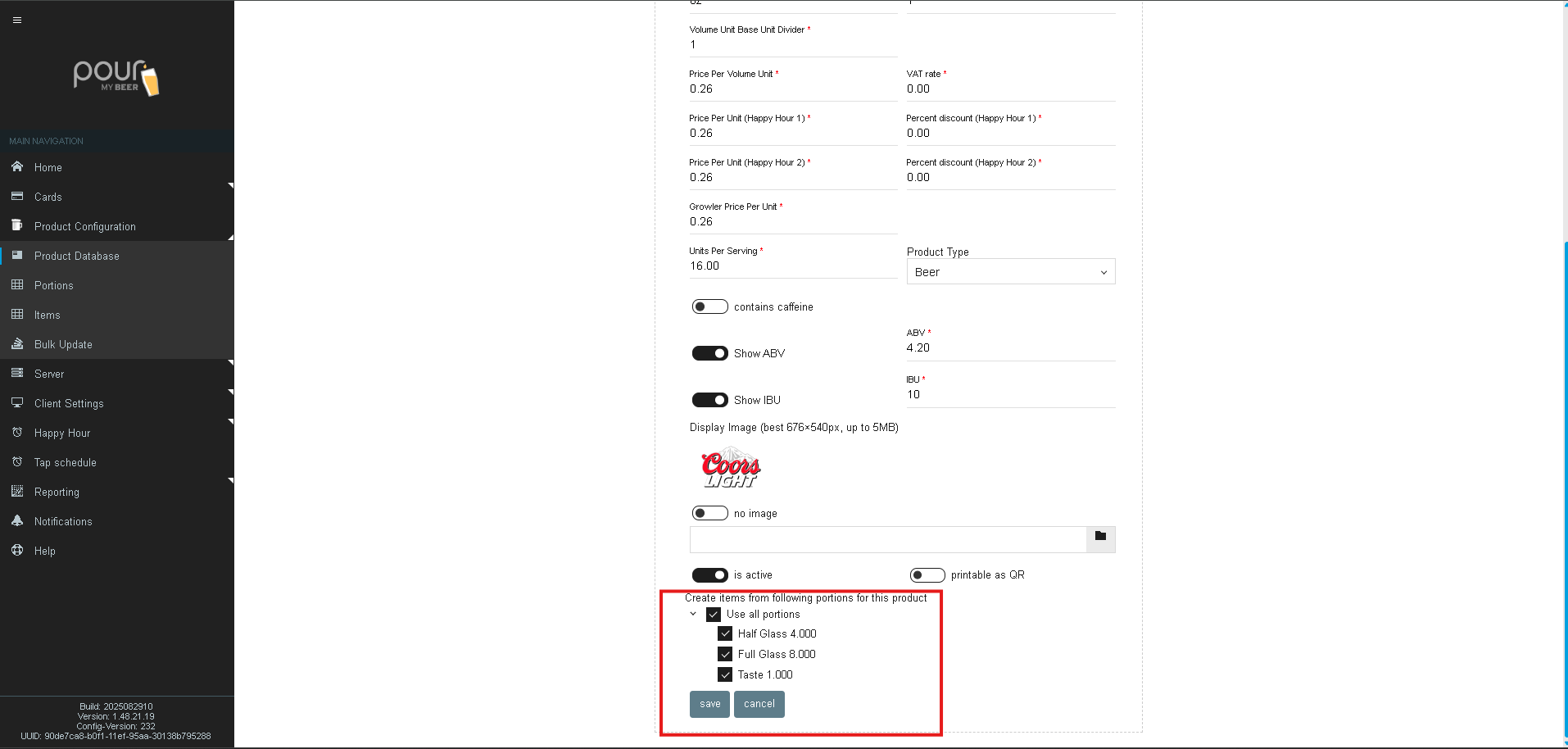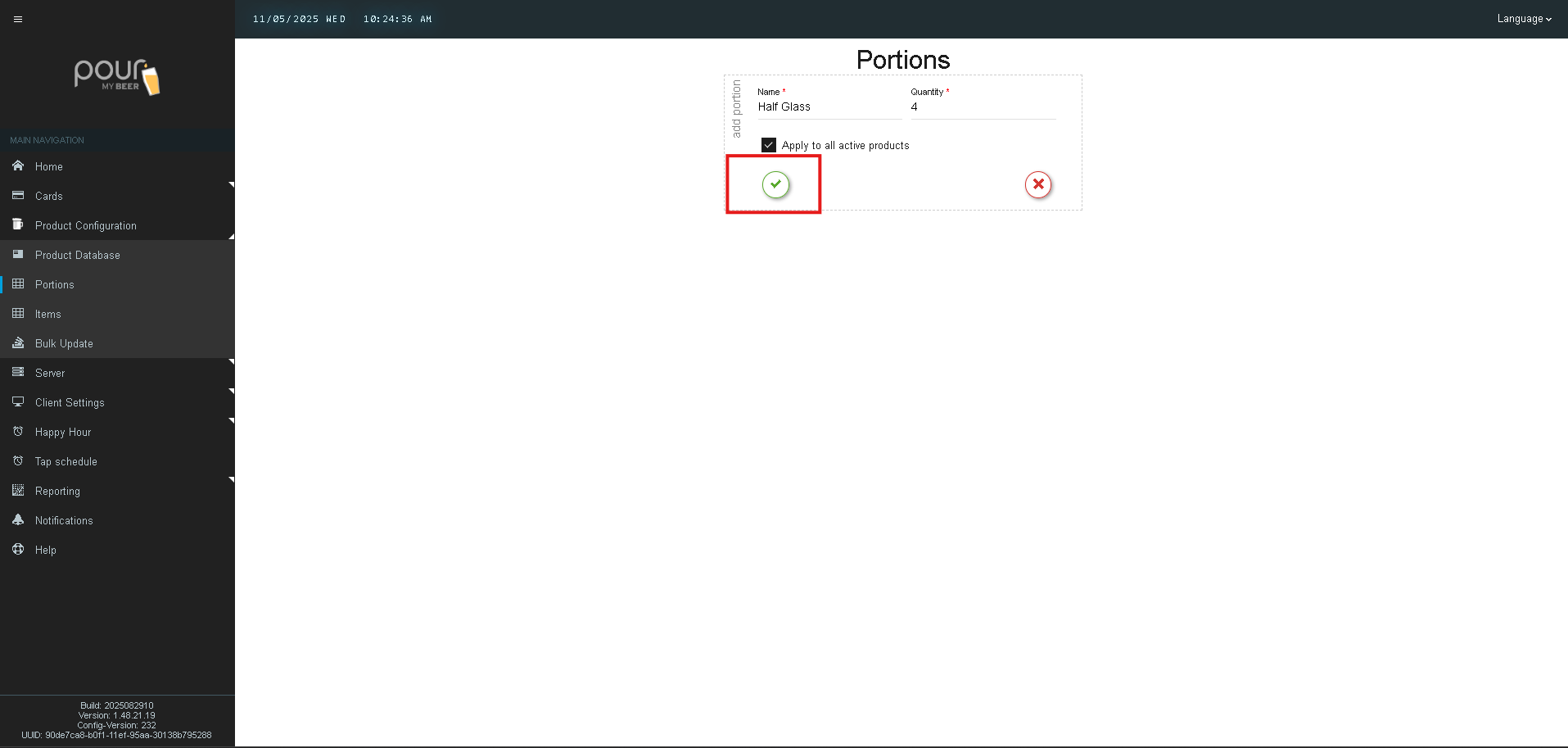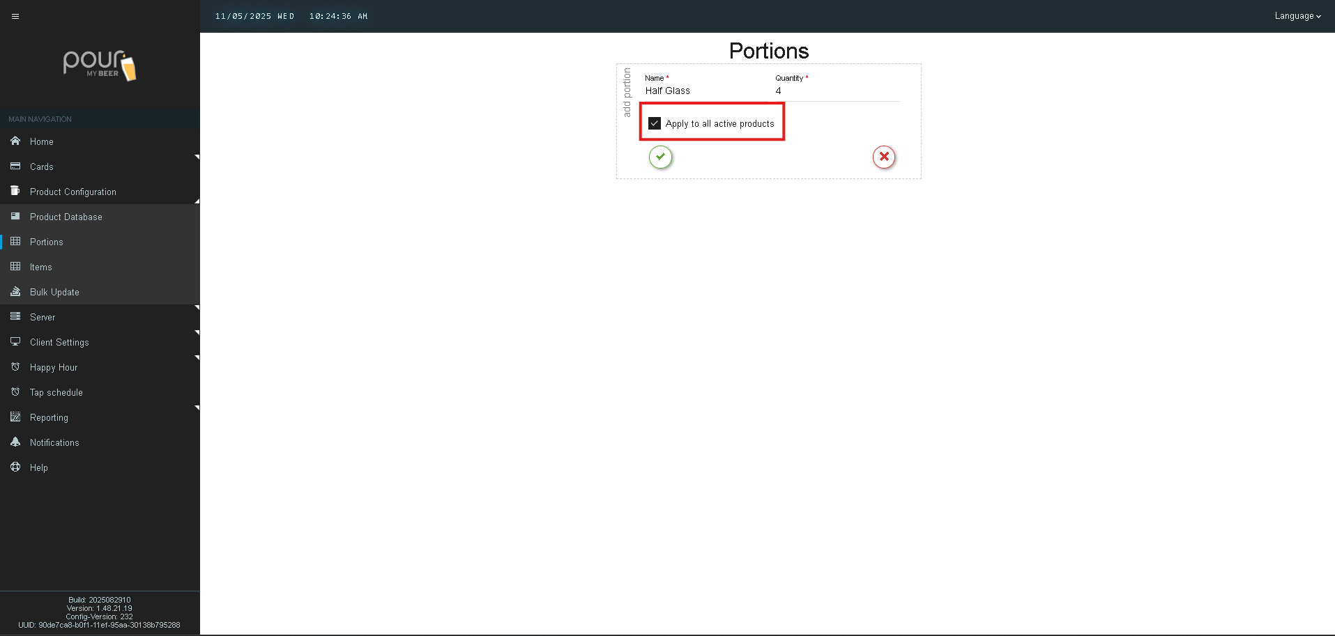 Check the box for Apply to All Active Products to make the portion available across all beers. This does not automatically turn on portions for the product just the ability to assign later.