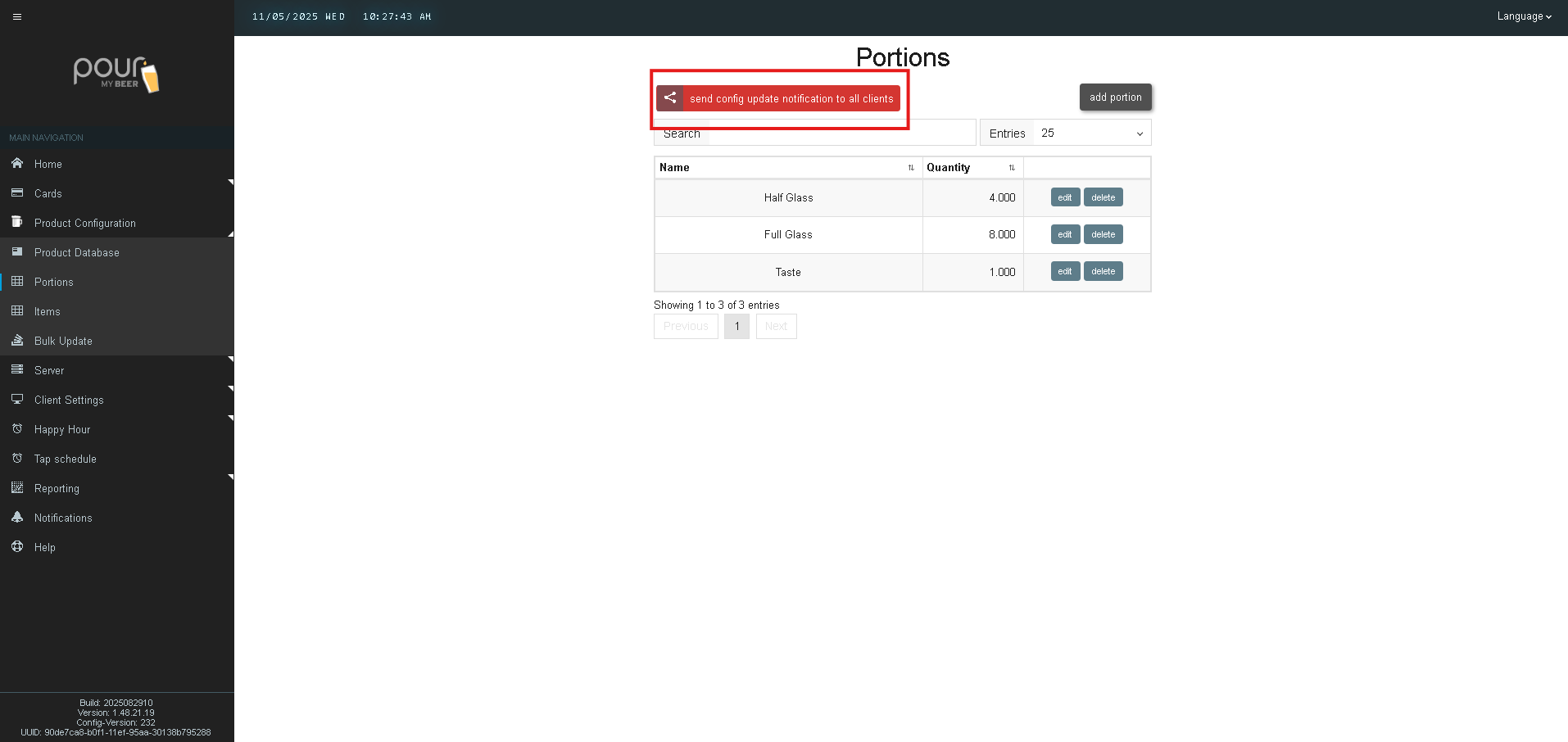 Once you’ve added your desired portions, click the Send Config Update Notification button.