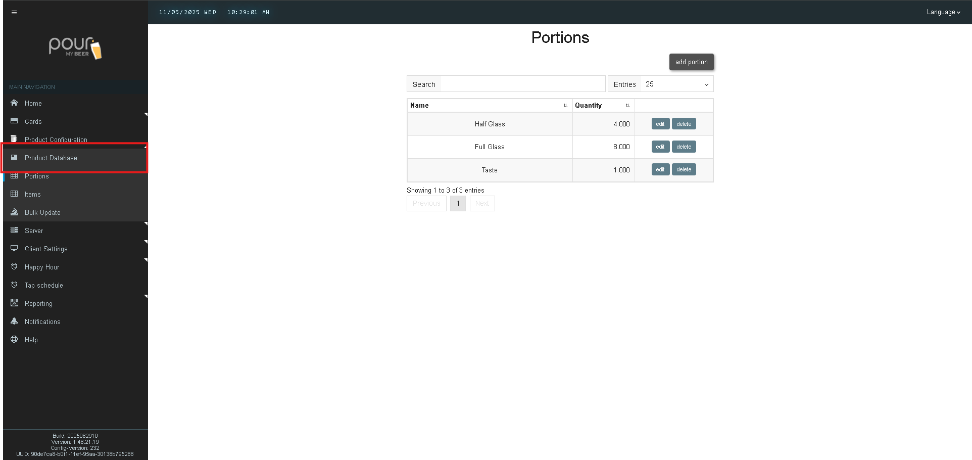 Portion Name: The label your customers will see on the tap screen (e.g., Taster, Half Pint, Full Pint).