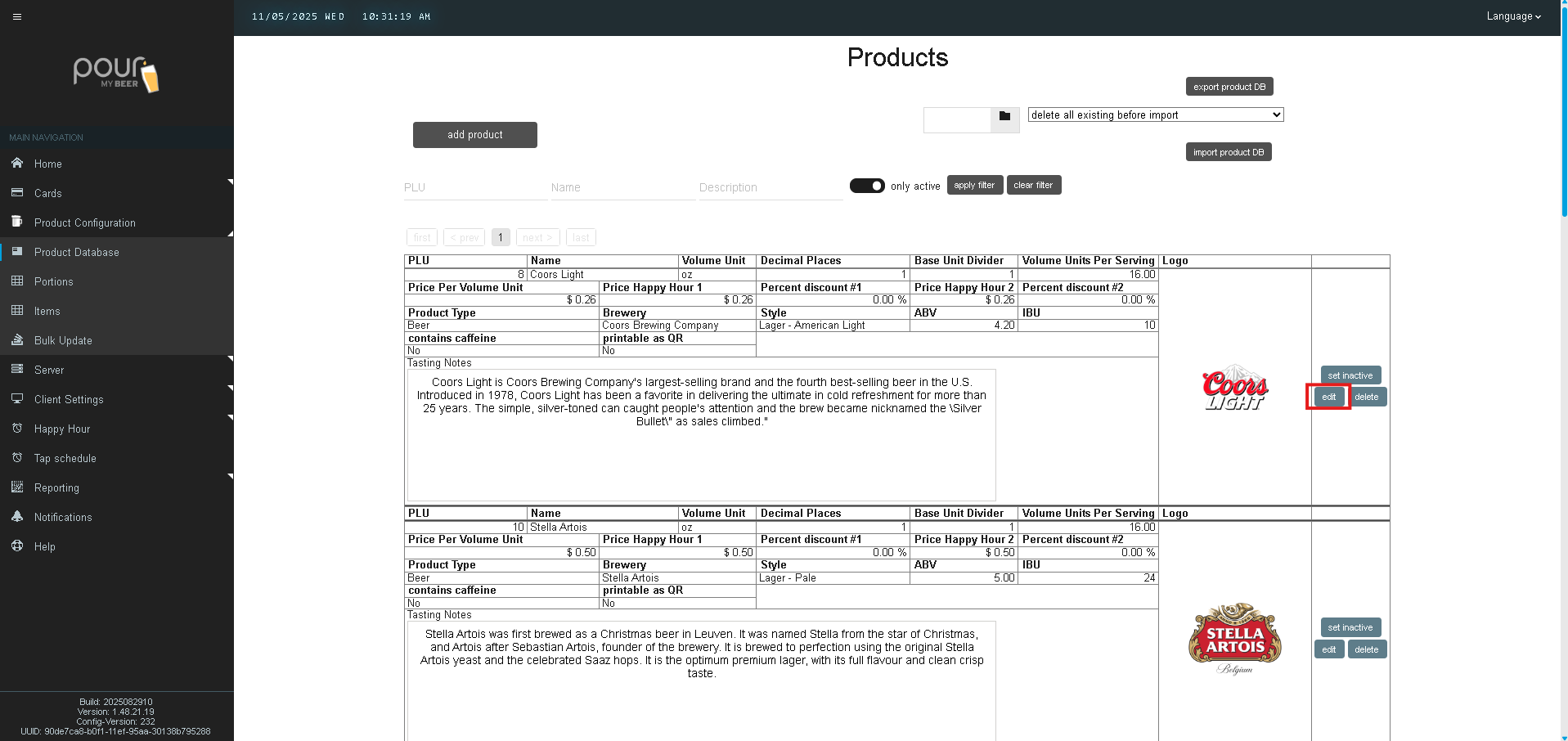 Scroll through the product list and tap the beer or beverage assigned to that line.
