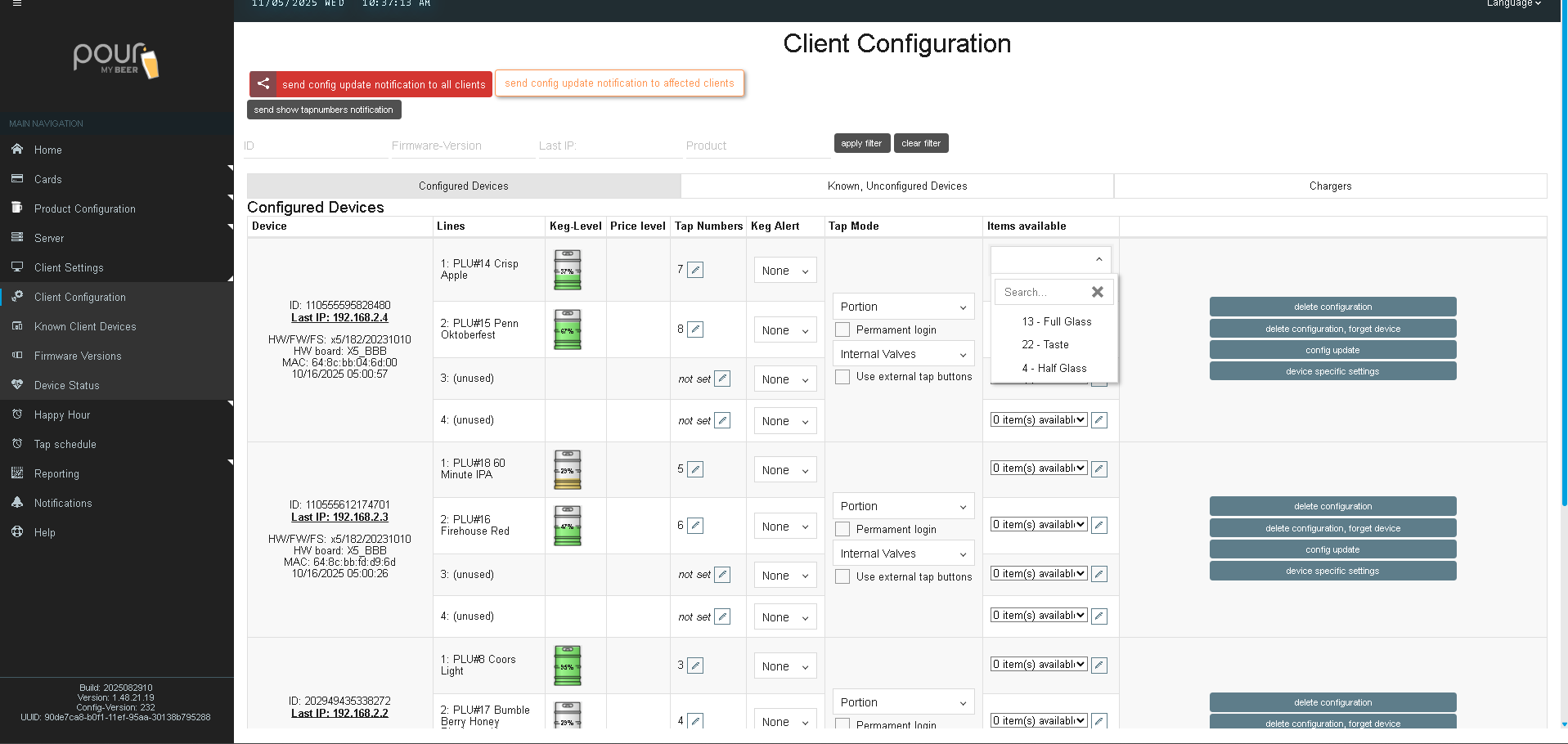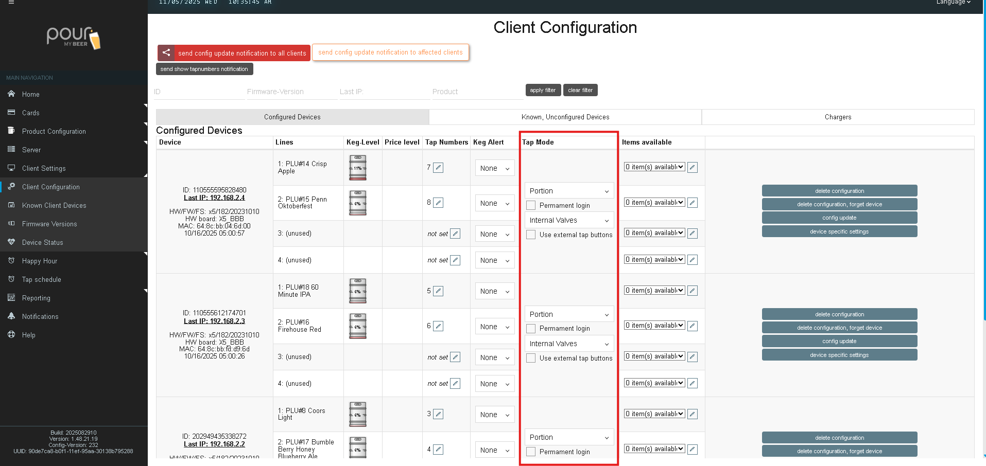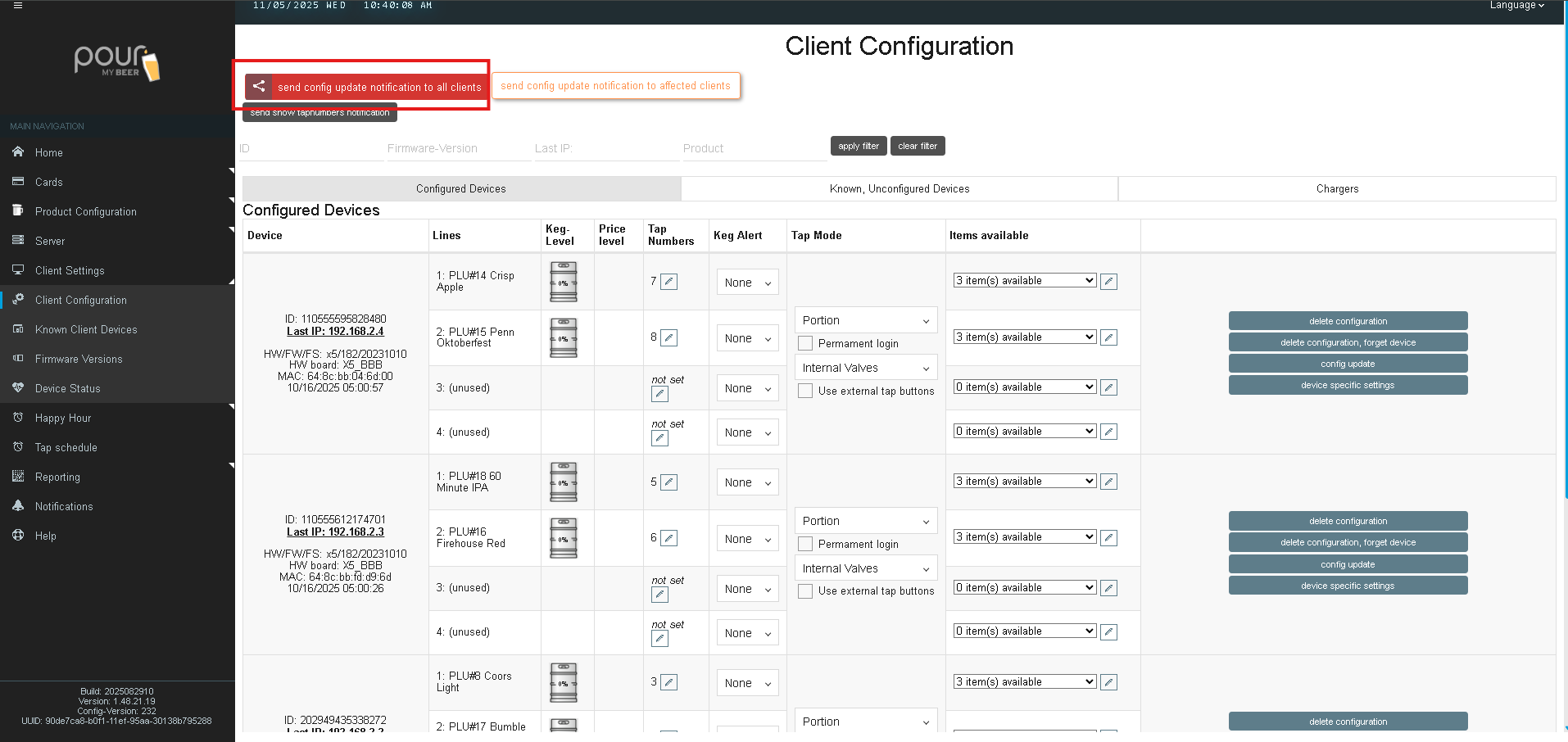After all taps are updated, click Send Config Update Notification again to apply the changes.