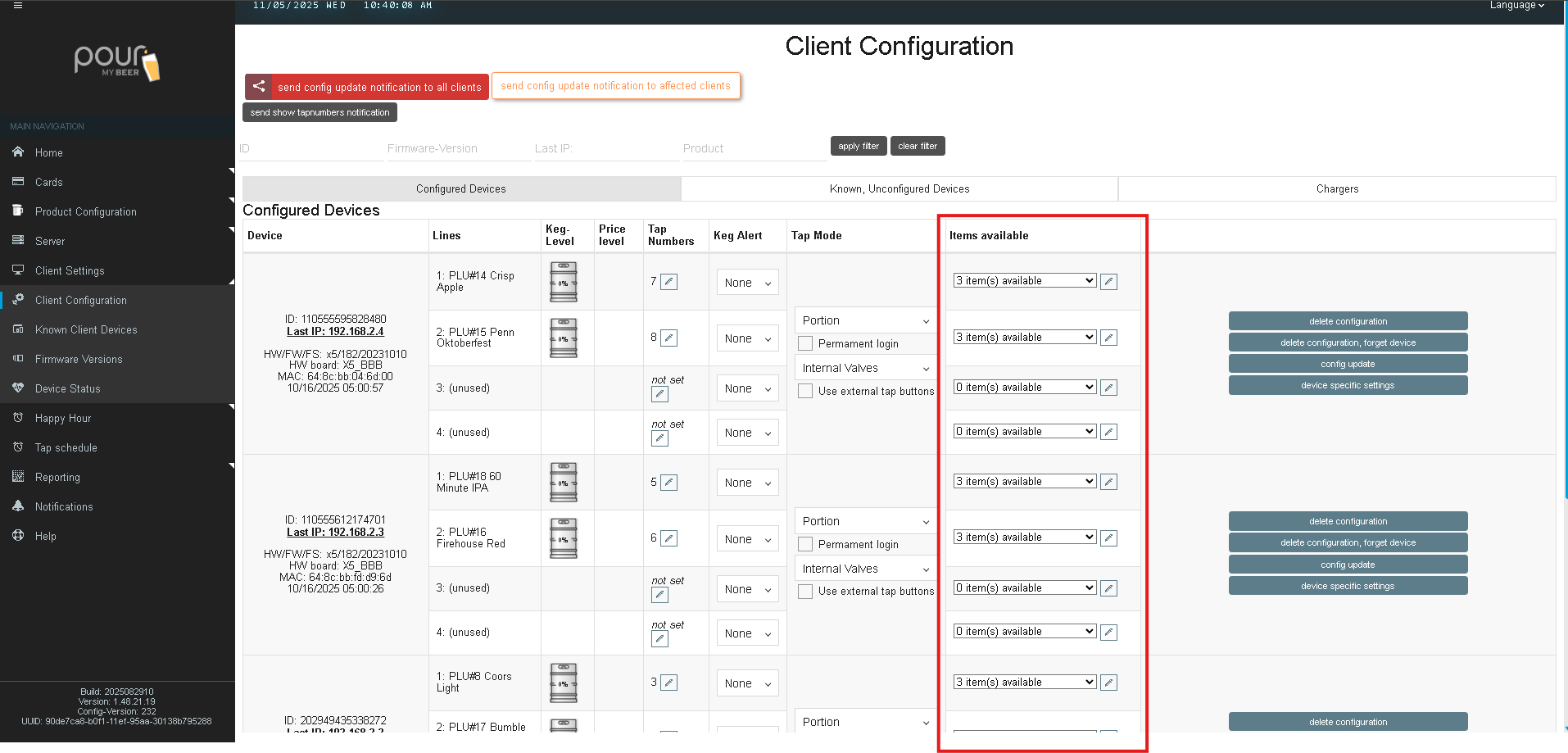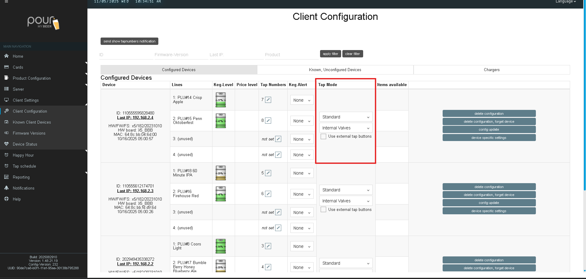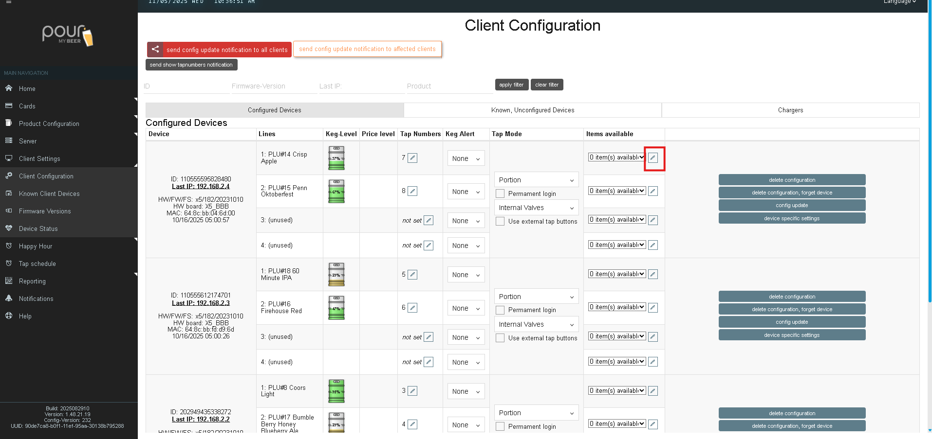 After all taps are updated, click Send Config Update Notification again to apply the changes.