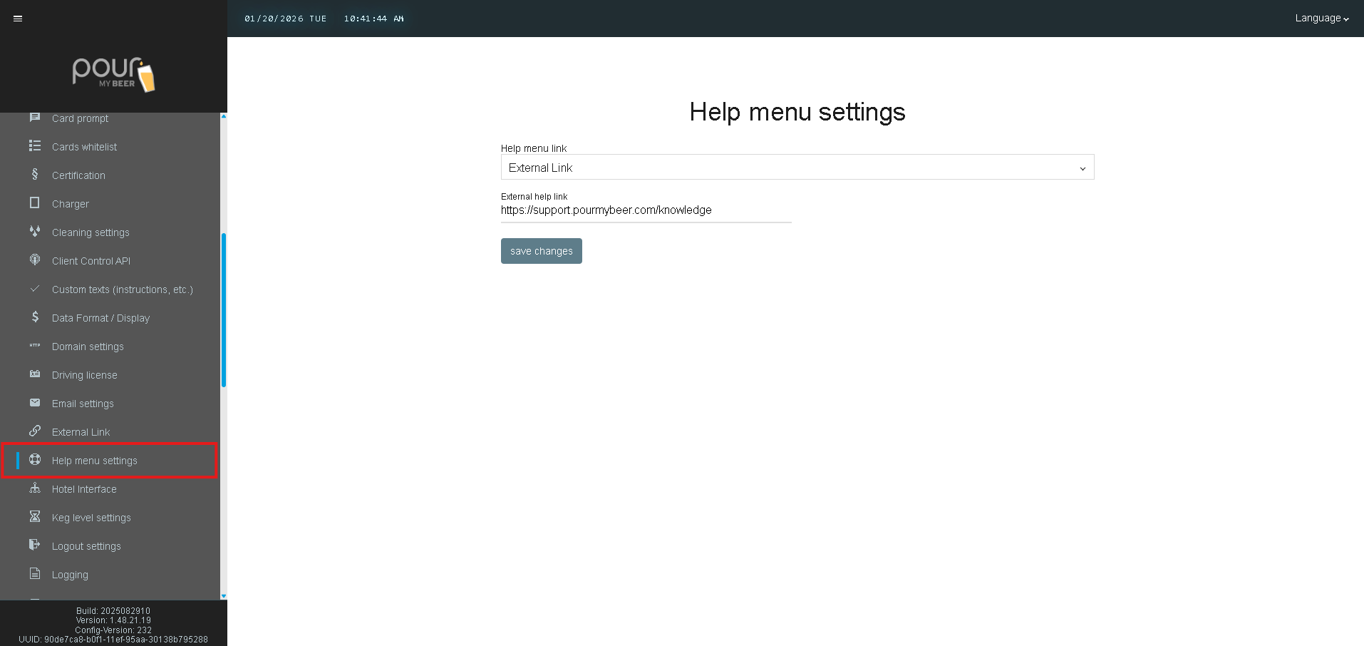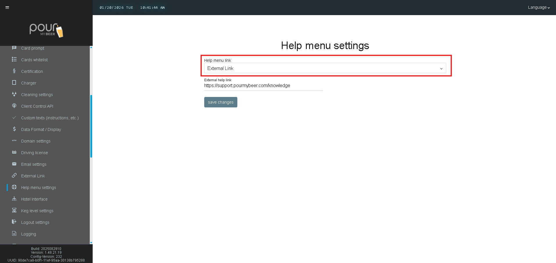 The Help Menu Settings allow you to control where the Help button directs staff when they click it inside the Table Tap Go (TTG) Server interface. This feature is useful for providing quick access to support documentation, training resources, or internal troubleshooting guides.
